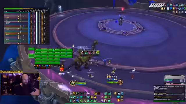 01:56:36Der Kampf wird fortgesetzt, wobei Anweisungen zum Töten von Adds, Ausweichen von Flächen und Einsammeln schwarzer Kugeln gegeben werden. Spieler mit Gravitation werden erneut angewiesen, sich an den Rand zu begeben. Nach einem Knockback soll der Tank wiederbelebt werden. Es wird erklärt, wie man durch Ringe fliegt und Steinen ausweicht. Spieler sollen sich Adds nähern, um sie als Durchgang zu nutzen, und sich dann an den Rand der Plattform begeben. Der Prozess wird auf der nächsten Plattform wiederholt. Nach der Ankunft unten sollen alle Damage-CDs und Kampfrausch aktiviert werden. Die Spieler sollen sich am blauen Mark orientieren und bei Bedarf nach links ausweichen, um Sterne abzufangen. Es wird darauf hingewiesen, dass man unter schwarzen Steinen stehen soll, um nicht verschlungen zu werden, und dass nach einem weiteren BR auf den Tank benötigt wird. Spieler sollen Explosionen ausweichen und sich ihnen dann wieder nähern. Nach dem Besiegen des Bosses können gestorbene Spieler sich einfach freilassen und direkt wieder spawnen. Es wird überlegt, ob noch ein oder zwei weitere Versuche auf HC folgen sollen.