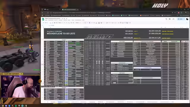 02:48:33Nach der langen Unterbrechung über interne Themen wurde das Hauptthema wieder aufgenommen: das Goldmaking. Der Streamer führte seine monatliche Inventur durch und zog das Gold seiner 24 Charaktere auf seine Kriegsbank zusammen. Dies dient dazu, den genauen liquiden Bestand zu kennen. Es wurde deutlich, dass er zwar eine Garage besitzt, diese jedoch als 'Vorratsraum für Müll' fungiert und durch diverse Gegenstände wie Winterreifen und Pfandflaschen belegt ist, so dass das Auto nicht hineinpasst. Dennoch ist es ihm wichtig, das gesamte Gold auf der Kriegsbank zu bündeln, um den Überblick zu behalten und die tatsächliche Summe zu kennen, was er als einen ruhigen, aber notwendigen 'Abendfüller-Counter' bezeichnet.