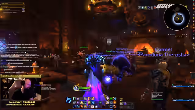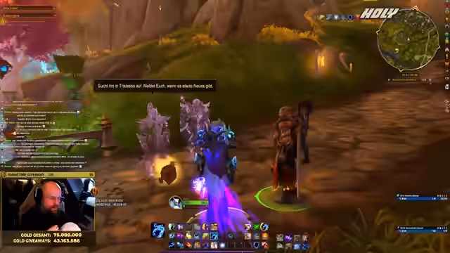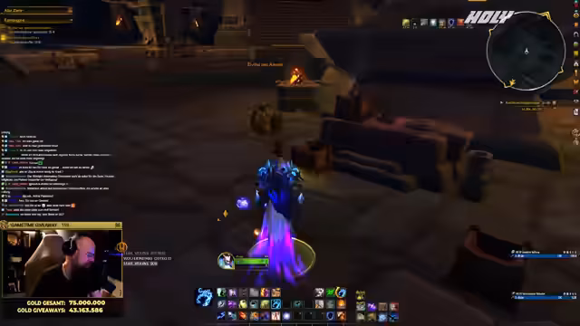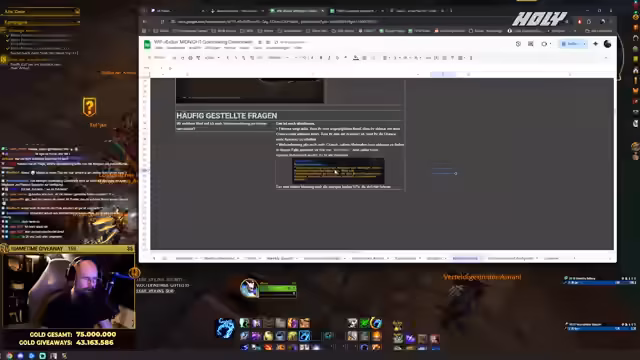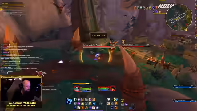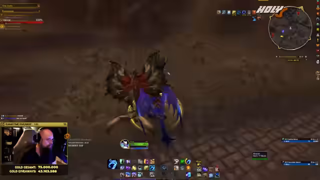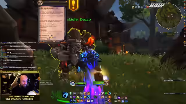01:39:26Aufgrund des Bot-Problems können keine Giveaways wie normale Marken verlost werden. Der Streamer verweist darauf, dass der Stream-Bot nicht verbunden ist und den Timer für die Giveaways nicht aktualisieren kann. Dennoch zeigt er sein aktuelles Gold an und stellt klar, dass er nicht pleite ist. Er beginn den Stream mit 73.883.519 Gold, was zu Beginn der Erweiterung ein solider Betrag ist, und erklärt, dass er es trotzdem genossen habe, einen Teil davon in der Community zu verteilen.