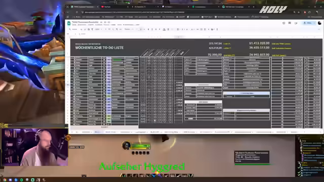 00:33:20Mit bis zu 147 Level-80-Charakteren, die hauptsächlich aus Fünf-Charakter-Gruppen bestehen, farmt der Streamer parallel Gold. Das Hauptziel des Farmings ist nicht persönlicher Reichtum, sondern die Versicherung im Stream, um glücklichen Gewinnern mit einer WoW-Marke helfen zu können, deren Wert sich dynamisch am Auktionshaus orientiert. Das Management der vielen Charaktere und deren wöchentlicher Aufgaben stellt für ihn eine persönliche Herausforderung und Spaßfaktor dar.