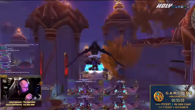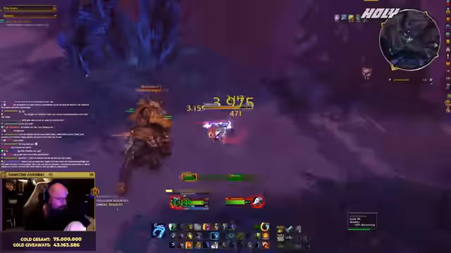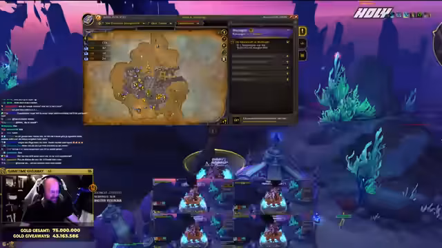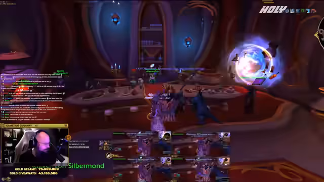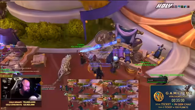 02:52:15Der Streamer interagiert stark mit seiner Community und baut eine eigene Community-Gilde auf. Der Höhepunkt des Streams ist eine große Verlosung von Spielzeit. Er verlost zwei WoW-Marken, die den Gewinnern im Wert von jeweils circa 340.000 Gold ausgezahlt werden. Zusätzlich gibt es ein kleines Minispiel in seinem Housing-Zimmer, bei dem die Gewinner zwischen Truhen wählen und zusätzliche Boni in Form von Plüschtieren (Wolf +20k Gold, Raptor +50k Gold) gewinnen können. Die Interaktion und die Verlosung sind ein zentraler Bestandteil des Streams.