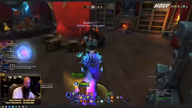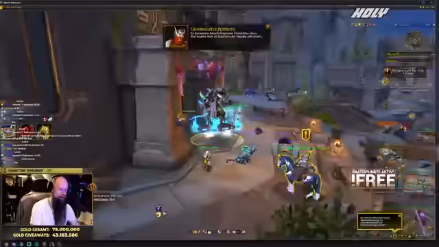 03:06:40Der Streamer führt eine Verlosung von 30 Tagen Spielzeit durch, die im Wert von etwa 400.000 Gold liegt. Für die Teilnahme werden 100 Punkte benötigt, und es wird ein 15-minütiges Zeitfenster für die Einlösung der Tickets gesetzt. Der Gewinner, Schahiri, wird ermittelt und eingeladen, das Gold direkt im Spiel entgegenzunehmen. Der Streamer bietet ihm eine optionale Nebenwette an: die Suche nach einem roten Plüsch-Dino in seinem Haus im Spiel, bei dem Erfolg wären weitere 50.000 Gold hinzugekommen.