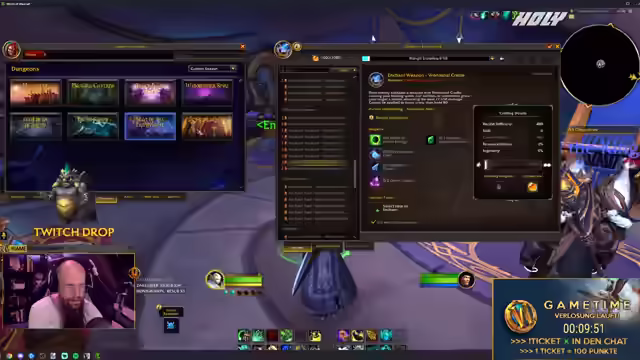 01:06:46Es wird empfohlen, die seltenen Berufswerkzeuge zu craften, um einen Vorteil zu haben. Durch Eingabe von !Free im Chat gibt es Gratispunkte für Giveaways. Verzauberungskunst bleibt anscheinend erhalten. Es gibt erhöhte Resourcefulness, Ingenuity und Multicraft beim Verzaubern in Midnight. Der Streamer will sich die Waffenverzauberungen ansehen. Es gibt keine Waffenverzauberung als Drop. Die Tiefen bleiben in Midnight erhalten. In der Beta gibt es spezielle Server, wo man sich alle Materialien kaufen kann, um Berufe hochzuskillen. Diese Server werden genutzt, um Berufs-Skill-Guides und TSM-Dinger zu erstellen. Das Game Time Giveaway läuft noch. Es gibt keine Waffenverzauberung als Drop, aber Housing Dekor. Es gibt Spezialisierungen für Verzauberungskunst.
