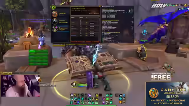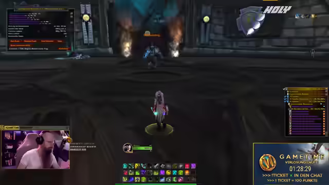 00:28:49Es wird angekündigt, dass Spielzeit verlost wird, da die Subs voll sind. Dies soll während des Rates geschehen. Es dauert noch zwei Wochen bis zum Augenarzttermin, um den Balken über der Kamera besser zu erkennen. Der Streamer kündigt ein Game Time Giveaway an, das aufgrund des VRates etwas länger laufen wird. Tickets zur Teilnahme kosten 100 Punkte, und es können so viele Tickets gekauft werden, wie gewünscht. Das Giveaway soll 90 Minuten laufen. Der Streamer blendet das Giveaway ein und startet es. Er spricht über unerwünschten Besuch und gibt Tipps, wie man diesen schnell wieder loswerden kann. Es wird eine organisierte Gruppe erstellt und auf die Raid Queue geschaut. Der Streamer spricht über Item Level Anforderungen für den Raid und erklärt, dass er bei unbekannten Leuten 705 ansetzen würde, während er Leute aus dem Mainrate auch mit etwas weniger mitnehmen würde.