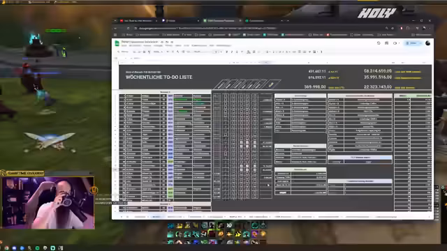 00:08:39Der Streamer plant, die erfolgreichen 30er-Boosts vom letzten Montag im Remix-Event zu wiederholen. Er muss eventuell noch einige Twinks erstellen und leveln, um bestimmte Erfolge abzuschließen, insbesondere um die Helia-Sets zu erhalten, für die ihm noch Stoff- und Plattenklassen fehlen. Aktuell besitzt er 28 Twinks und benötigt weitere sieben, um alle Zeitläufer-Erfolge für verschiedene Klassen wie Paladin, Krieger und Magier zu komplettieren. Insgesamt hat er bereits 140 Charaktere auf Level 80 im Remix-Event. Die Verwaltung dieser großen Anzahl von Charakteren ist eine Herausforderung, da er ein festes wöchentliches Einkommen mit einer speziellen Methode erzielt, die er mit mehreren Charakteren gleichzeitig durchführt. Er betont, dass er nicht die Zeit hat, jeden Charakter einzeln zu spielen, und dass er Wiederholungen vermeiden möchte, um die Motivation aufrechtzuerhalten. Die Effizienz seiner Methode ermöglicht es ihm, mit 20 Charakteren Berufe auszuüben und dabei fast 40 Millionen Gold über das Auktionshaus zu generieren, was ihm ausreichend erscheint.