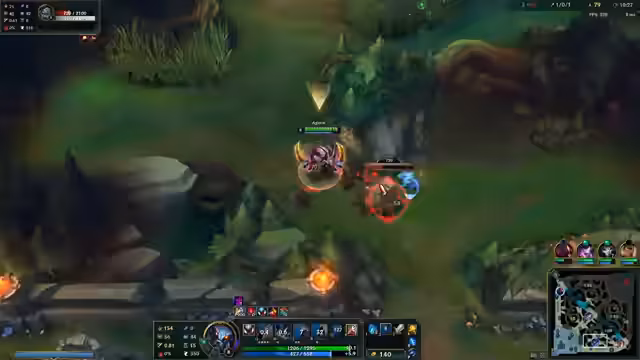 00:01:57Die ersten Minuten des Spiels sind von der early-game Dominanz der eigenen geprägt. Die Orianna der Gegner wird als sehr aggressiv eingestuft. Der Streamer kommentiert, dass sie eine Voraussetzung im early-game habe. Es gibt mehrere kleinere Zusammenstöße an der Bot-Lane, wobei man versucht, einen Vorteil zu erzielen, indem man den Feind aggressiv spielt.