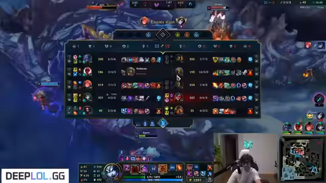 05:10:06In einem chaotischen Spielende, in dem das Team ausgeskaltet wird, sieht der Streamer die Niederlage als wahrscheinlich an. Er reagiert auf die Entscheidungen des gegnerischen Teams, insbesondere auf einen Nautilus, der scheinbar ziellos spielt. Das Spiel endet mit dem Gefühl, das Team nicht retten zu können, und der Streamer schließt den Stream mit einer Mischung aus Frustration und einem Song, der zur Stimmung passt.