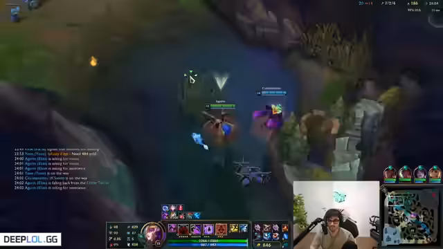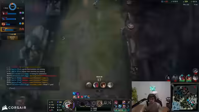 04:26:37In einer entscheidenden Phase des Spiels wird die Position von Akali diskutiert und ein Drachenkampf eingeleitet. Der Spieler bewertet die Situation nach einem Kampf, bei dem Abessa nur noch wenig Lebenspunkte hat und unklar ist, ob sie ihre ultimative Fähigkeit eingesetzt hat. Es wird überlegt, ob das Team den Kampf ohne den Spieler beenden kann, aber die Gefahr eines Teleports von Abessa wird als zu hoch eingeschätzt, um das Risiko einzugehen. Stattdessen wird der Fokus auf das Einnehmen von Türmen und das Sammeln von Gold gelegt, während gleichzeitig die Bewegungen des Gegners beobachtet werden, insbesondere Shen und Ambes, die auf der Top-Seite aktiv sind.