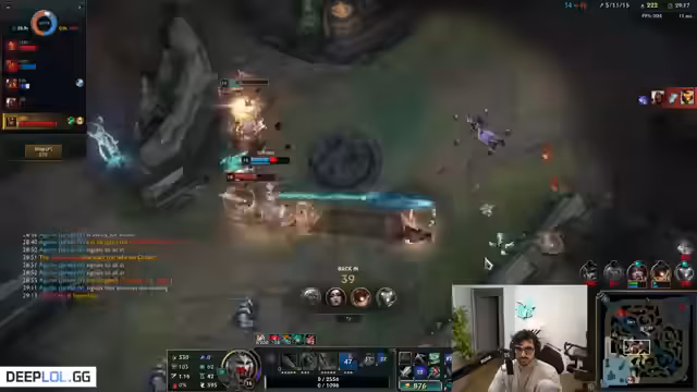 09:12:49Der Streamer analysiert bestimmte Spielzüge, darunter einen nahe gelungenen Kill auf einem gegnerischen Champion. Er beklagt mangelnde Unterstützung von seinem Team und äußert Frustration über seine eigene Leistung in bestimmten Phasen des Spiels. Er erläutert auch einige seiner Item- und Runenentscheidungen und warum sie passend waren.