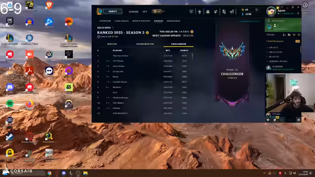 06:15:13Der Streamer startet in ein laufendes Spiel und äußert sich kommentierend zum Spielgeschehen. Er diskutiert taktische Entscheidungen wie das Setzen von Blättern und das Sterben seines Champions, während er strategisch überlegt, wie er den Gegner besiegen kann. Parallel dazu spricht er über seine aktuelle Ranked-Position und das Ziel, von Rang 2 auf Rang 1 aufzusteigen, wobei er die Bedeutung des aktuellen Spiels für seinen Aufstieg betont und seine Zuversicht in die eigenen Fähigkeiten ausdrückt.