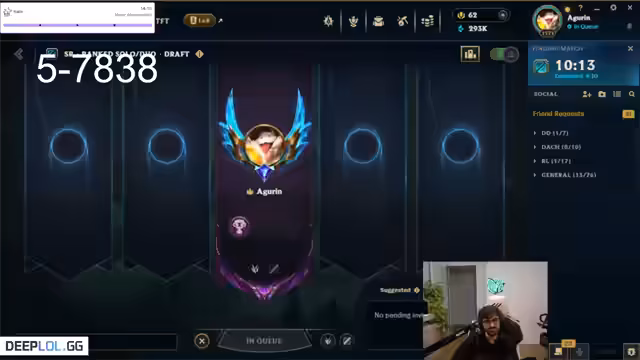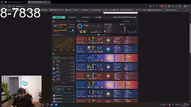 07:47:26Der Streamer spielt League of Legends in der Rangliste und wird, zu seiner eigenen Frustration, oft in der Rolle des Supports gepaart. Er beschreibt die Probleme dieser Position, wie zum Beispiel Ressourcenmangel und ein ständiges unterleveln. Während des Spiels gibt es mehrere kritische Situationen, in denen er Entscheidungen trifft, die zu Toden oder verpassten Chancen führen. Er äußert seine Verärgerung über das Spielverhalten seiner Mitspieler und das Ergebnis der Spiele, wobei er sich selbst manchmal für Fehlentscheidungen verantwortlich macht.