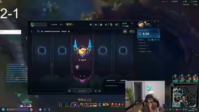 00:01:42Der Stream startet und der Streamer begrüßt die Zuschauer. Er erwähnt, dass er lange geschlafen hat und die Rangliste in der Schweiz geöffnet ist. Er gibt seinen aktuellen Start-Rank als 89 an und erwähnt, dass er am Vortage 109 LP gewonnen hat, wodurch er 50 Ränge aufgestiegen ist und heute bei Rank 59 beginnt. Er fragt auch, ob die LoL-Server gerade DDoS-Angriffen ausgesetzt sind, was von Zuschauern bestätigt wird.