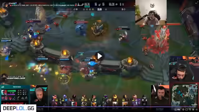 01:14:19Während des Spiels konzentriert sich agurin auf das Map-Play und die Vision-Steuerung. Er plant einen Angriff auf den Drachen, der jedoch scheitert, da der gegnerische Jace Flash besitzt. Die Kommunikation im Team ist komplex, und agurin ist unsicher über den richtigen Zeitpunkt zu kämpfen oder zurückzuziehen, während er gleichzeitig Druck auf der Bot-Lane aufbauen möchte.