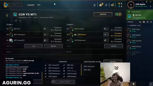 00:44:10agurin berichtet über erhebliche Probleme mit dem Matchmaking auf EU West. Durch Änderungen an der Warteschlange kann er kaum noch Spiele finden und ist auf seinem Hauptaccount auf Minus 26 gefallen, was ihn deprimiert. Parallel dazu plant er für die Prime League und versucht, sein Team mit Zendo und anderen Spielern zu koordinieren, wobei er auf technische Hürden wie Discord-Probleme und Lobby-Setup stößt.