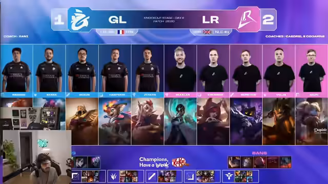 00:10:14Die Aufmerksamkeit verlagert sich auf die Draft-Phase eines neuen Spiels. Der Streamer analysiert die Picks und Bans. Er kommentiert die Synergien und Counters, wie zum Beispiel Jarvan mit Keanu und Chogath gegen Yorick. Auch die Mid-Lane-Matchup zwischen Aurora und Galio sowie die Bedeutung von Sylas' Ultimate werden diskutiert. Der Fokus liegt auf der strategischen Zusammenstellung der Teams und der Analyse der gegnerischen Picks.