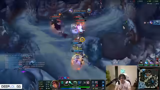 05:45:25Der Streamer analysiert das Matchup gegen Fizz und fragt nach Tipps, wie er sein W am besten nach Fizz' E einsetzen kann. Er diskutiert, ob er immer sein W puffern sollte. Eine humorvolle Frage, ob in Deutschland Weihnachten gefeiert wird, wird als Witz abgetan. Er überlegt, ob er Ghost als Summoner Spell nehmen sollte, da er viel Schmerz empfindet. Die Diskussion über seine Schmerzen und die Müdigkeit nach langen Spielzeiten wird mit der humorvollen Bemerkung, dass er einfach getötet werden sollte, untermauert. Er reflektiert über seine Entscheidungen im Spiel, wie einen Hard Push, und ob es ein Fehler war, nicht zu basen.