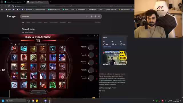 01:43:51Der Streamer befindet sich in Challenger-Rang mit etwa 1300-1400 LP und stellt fest, dass er keine niedriger eingestuften Accounts hat, um entspannter zu spielen. Er fühlt sich unter Druck und gezwungen, Champions zu spielen, die er noch nicht gut beherrscht, was zu vielen Toden führt. Er entschuldigt sich bei seinen Zuschauern und betont, dass er nicht absichtlich schlecht spielt, sondern neue Champions ausprobiert.