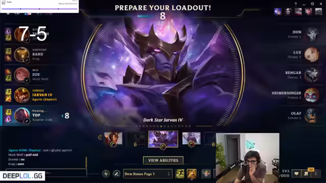 08:33:34Der Streamer äußert sich frustriert über die Champion-Picks seiner Teamkollegen, insbesondere über Hecarim und Rakan, und plant, Lethality zu bauen. Er hinterfragt die Wahl von 'Velocity of War' und prüft, ob es sich um einen OTP (One-Trick Pony) handelt. Die Diskussion über die LP-Gewinne und -Verluste in High-Elo-Spielen wird fortgesetzt, wobei der Streamer seine Theorie über die LP-Inflation und die Anzahl der gespielten Spiele darlegt. Er vergleicht seine LP-Gewinne mit denen anderer High-Elo-Spieler wie Odysseus, um seine Theorie zu untermauern. Die Blind-Pick-Wahl von Nocturne durch den Gegner wird als Fehler angesehen, da dies ein 'free Jarvan game' ermöglicht hätte. Der Kha'Zix-Pick wird als 'low-key end' bezeichnet. Der Streamer beklagt die mangelnde Unterstützung und die Fehler seiner Teamkollegen, wie das Fehlen von Spells und das Ganken auf Level 1. Er ist fassungslos, dass sein Jungler ein Master-Spieler ist, der solche Fehler macht. Die Frustration über die 'inting' Leistung seiner Teamkollegen führt dazu, dass er plant, sie zu reporten. Er betont, dass er den Schaden hat, um zu gewinnen, aber die fehlende Koordination des Teams dies verhindert. Die Unfähigkeit, Barone zu contesten, und die schlechten Entscheidungen seiner Teamkollegen werden kritisiert, was zu einem Gefühl der Hilflosigkeit führt. Er fühlt sich, als würde er in einem normalen Spiel spielen, anstatt in High-Elo.