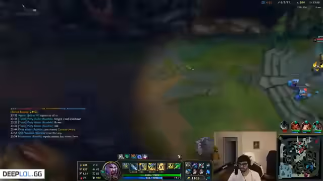 01:51:58Im Verlauf des Spiels beschreibt der Streamer gefährliche Rotationsversuche. Er versucht, sich in der Botlane zu engagieren, wird aber vom gegnerischen Team gefangen und getötet. Er kritisiert die mangelnde Hilfe seines Teams, insbesondere der Seraphine, die 'nur am Enden' war und unkoordinierte Fights begann, die zum Verlust des Spiels führten. Die Kommunikation im Team wird als Hauptproblem für die Niederlage identifiziert.