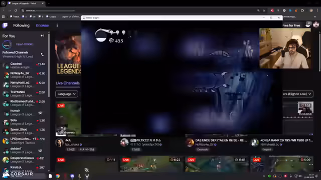 Agurin startet deutschsprachigen League of Legends Content, analysiert Spielstrategien, Dschungelrouten und kommentiert Gegnerentscheidungen. Er diskutiert Competitive-Ambitionen, Prime League, Item-Builds und Teamdynamik. Twitch-Zahlen, Zuschauerinteraktionen und persönliche Anekdoten fließen ein. Er beendet den deutschen Teil und wechselt zu Englisch.