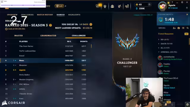 Es wurde eine ambitionierte Session League of Legends mit dem Ziel, Rang 1 EUW zu erreichen, aufgezeichnet. Zunächst konnte der Fortschritt gefeiert werden, doch eine Reihe von verlorenen Spielen sorgte für zunehmenden Frust. Kritik galt dabei sowohl der eigenen Leistung als auch der Koordination im Team. Die Stimmung der Aufzeichnung war geprägt von Enttäuschung und sarkastischen Kommentaren.