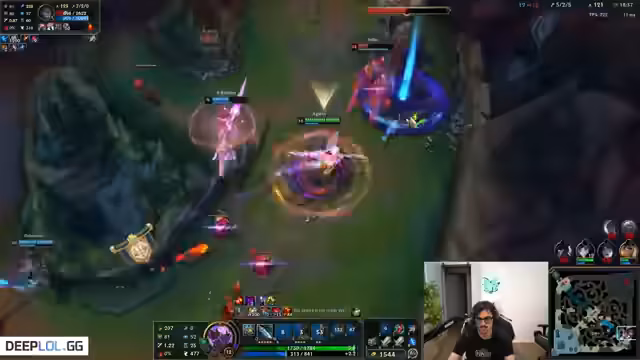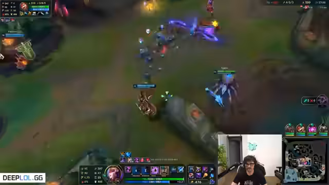 08:30:28Die Unterhaltung kehrt zu den League of Legends-Spielen zurück. Der Streamer ist im Mid-Lane auf Kassadin spielt und ist unzufrieden mit seiner Leistung und der des Teams. Er findet die eigenen Entscheidungen und die des Teams suboptimal und beschreibt das Spiel als emotional belastend und frustrierend, da es trotz guter Kontrolle verloren geht.