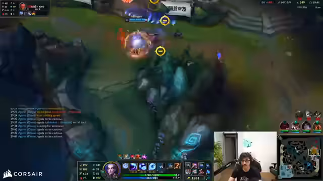 05:14:37Der Fokus verlagert sich auf die notwendige Team-Koordination. Der Streamer kommuniziert mit seinem Team, insbesondere über das Timing der Maiden des gegnerischen Yorick, die ein zentrales strategisches Element darstellt. Er betont die Wichtigkeit von Flashes, Vision und der richtigen Positionierung im Kampf. Mehrfach versucht er, seine Mitspieler für einen Nashor-Drag oder einen Teamfight zu motivieren, scheitert jedoch an mangelnder Abstimmung.