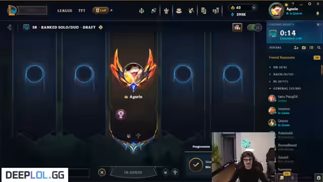 00:07:09Nachdem der Streamer sein Solo-Q-Spiel gestartet hat, interagiert er intensiv mit den Viewern und bittet sie, ihm im Spiel beizustehen. Es wird erwähnt, dass es mehrere Master-to-Challenger-Spieler im Spiel gibt, was zu Spannungen führt. Der Streamer plant, einen dieser Spieler namens Druthut zu trollen, anstatt zu tryharden, was das Spiel dynamischer und unterhaltsamer gestalten soll.