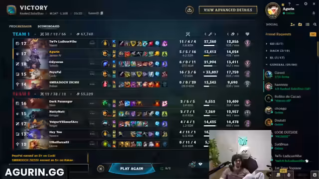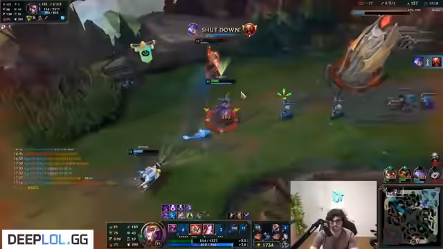 00:34:28Nachdem ein Teamfight verloren geht und der Drache nicht geholt werden kann, fühlt sich der Streamer als Verlierer. Er kritisiert das Verhalten seines Teams und äußert den Wunsch, die gegnerische Waffe zu kontrollieren. Er wünscht sich mehr Sicherheit durch Flash und ultimative Fähigkeiten, um einen Counter-Play zu ermöglichen, und beschreibt den Moment als sehr frustrierend und geprägt von der Unfähigkeit, das Spiel zu drehen.