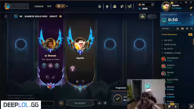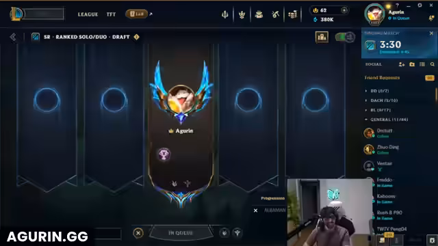 07:25:08Nach einer Runde mit einer positiven Bilanz von 7 Siegen zu 5 Niederlagen, aber einem Netto-LP-Verlust von 3, ist der Streamer frustriert vom Ranked-System. Er spekuliert, dass die Punkte durch eine Art 'Aegeus' beeinflusst werden, und analysiert die hohe Anzahl von Spielern in seiner Umgebung, die über 2000 LP haben. Die Funktionsweise des Systems erscheint ihm verrückt und ungerecht, da der Erhalt von LP nicht direkt mit der Anzahl der Siege korreliert zu sein scheint. Die Stimmung ist gekennzeichnet durch Verwirrung und eine gewisse Resignation.
