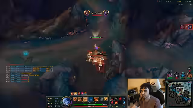 04:50:05Es wird ein Fehler in der Spielweise erkannt, nämlich das automatische Ausführen von E vor der Ult, was die Ult beeinträchtigt. Es wird beschlossen, Balls zu ehren. Die LP beträgt 420. Es wird überlegt, ob R-Flash möglich ist, da die Sicht eingeschränkt ist. Es wird die richtige Reihenfolge der Fähigkeiten diskutiert: Flash, dann R. Es wird ein Fehler bei der Item-Auswahl festgestellt (Eis statt Grün). Es wird überlegt, ob man warten sollte, bevor man Fähigkeiten einsetzt, um dem Gehirn Zeit zur Reaktion zu geben. Es wird die Idee diskutiert, aus dem Busch zu flashen, um den Gegner zu überraschen. Es wird festgestellt, dass ein später Invade um 1:38 ungewöhnlich ist. Es wird entschieden, den Stream für den Tag zu beenden, da die Energie fehlt.