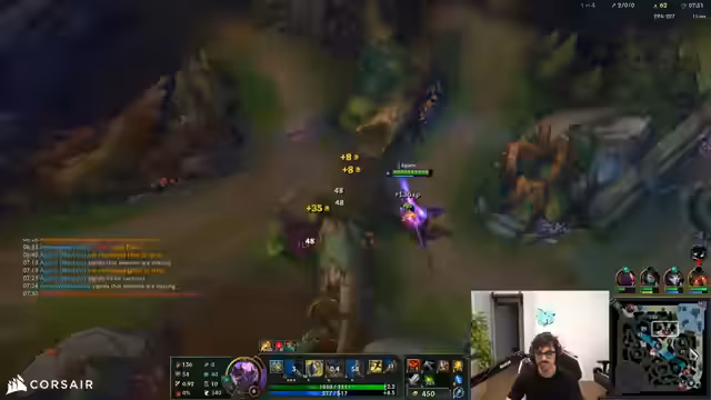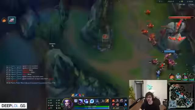 00:07:35Während des Spiels analysiert der Streamer seine eigenen Fehler und die des gegnerischen Teams. Er kritisiert seine Entscheidungen, etwa dass er die Ultimate nicht auf den Olaf eingesetzt hätte, um seine Mitspielerin zu schützen. Er bemerkt auch Schwächen im gegnerischen Spielstil und denkt über taktische Möglichkeiten nach, während er versucht, das Spiel trotz schwieriger Umstände zu gewinnen.