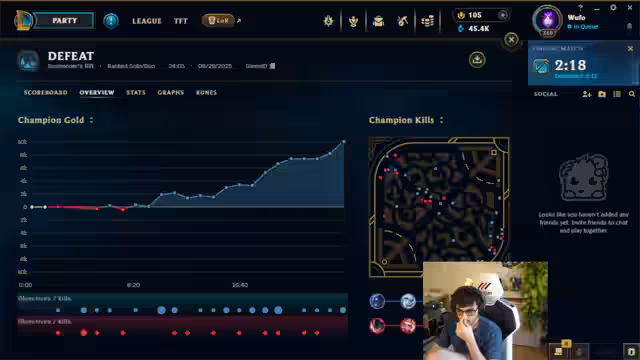 00:20:25Der Streamer reflektiert über seine Spielweise und gesteht Fehler ein. Er hätte für einen Mitspieler flashen können, tat es aber nicht. Er hätte eigentlich basen und dann in die Top-Side des Gegners invaden sollen. Er gibt zu, dass sein Plan nicht aufging und er den Gegner zunächst für gut hielt, dann aber seine Meinung änderte. Er kritisiert seine eigene Spielweise als dumm und betont die Notwendigkeit zu basen. Selbst ohne die Anwesenheit eines bestimmten Spielers wäre ein Sieg unwahrscheinlich gewesen. Ein Fehler ermöglicht es dem Gegner, das Spiel zu verlängern. Der Streamer bemängelt, dass sein Team zu schnell spielt und gibt einen Shotdown ab, was die Verlustwahrscheinlichkeit erhöht. Er kritisiert einen TP zum Bot als schlechtes Spiel und stirbt erneut. Er räumt ein, dass es ein schlechtes Spiel war und wiederholt diese Feststellung mehrmals. Er betont, dass das Team einfache Dinge nicht schafft und fordert sie auf, sich zurückzuziehen und auf den Respawn von Ziggs zu warten. Er schlägt vor, eine weitere Full Clean durchzuführen und dann Atakan anzugreifen, um das Spiel zu gewinnen. Er kritisiert, dass sein Team erneut einen Kampf beginnt, obwohl dies nicht ratsam ist. Er nimmt die Raptors des Gegners und fordert sein Team auf, die eigenen Camps zu behalten. Er fragt sich, warum Karma so viele Probleme hat und bedankt sich bei einem Zuschauer. Er äußert sich positiv über seinen aktuellen Lebensweg, obwohl er das Endergebnis noch nicht sehen kann. Er findet das Item Axiom auf Jarvan sehr stark und holt sich einen Stift, als ein Zuschauer einen Triple erzielt.