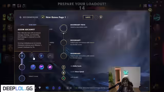 00:15:19Während des Spiels trifft der Streamer Entscheidungen über seine Champions und Runen. Er wählt z.B. Karma und prüft seine Runen-Kombinationen, um optimal vorbereitet zu sein. Zudem plant er sein weiteres Vorgehen, z.B. „slow pushen“ und den gegnerischen Jungler ausnutzen, der im Moment über sein Ziel hinaushält. Er analysiert den gegnerischen Jungler und dessen Fehler, was ihm einen Vorteil verschafft, indem er das Tempo des Spiels kontrollieren kann.