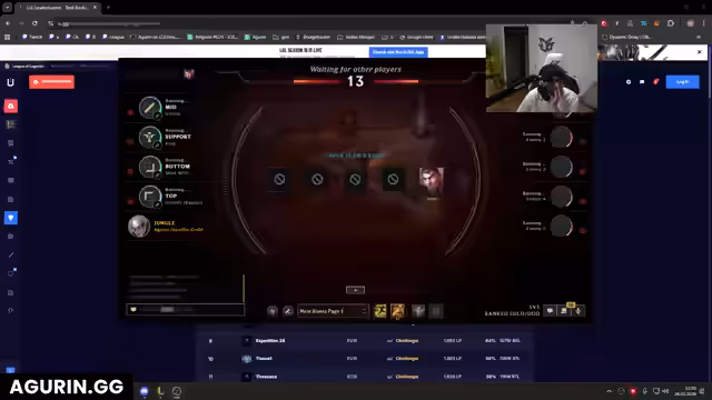 00:39:52Nach einer Serie von Niederlichkeiten äußert der Streamer starke Kritik am Spielverhalten seines Teamkollegen, den er als 'wirklichen Beginner' bezeichnet, der nie in der Jungle gespielt habe. Er fühlt sich von einem 'masterplayer' unfair behandelt, da dieser arrogant genug war, ihm keinen Roll zu geben. Er kommentiert auch seine negativen LP-Games und seine 'frustrating' Stimmung aufgrund der ständigen Niederlagen.