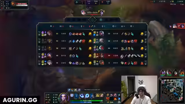 03:36:15Ein erfolgreicher 2-1-Kampf im Top-Lane eröffnet die Möglichkeit auf einen Sieg, aber die Stimmung kippt, als das Team ohne seinen stärksten Mitglied weit zurückliegt. Der Streamer frustriert über seine eigene Performance, die von ihm als langsam und ineffektiv beschrieben wird. Trotzdem bleibt er dabei, mit Karma Druck aufzubauen, aber das Team ist nicht in der Lage, den Vorteil zu nutzen, was zu einem Verlust führt und den Streamer wütend zurücklässt.