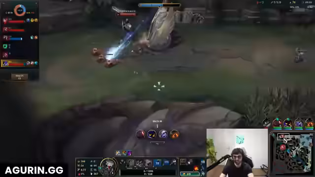00:09:37Während des Spiels analysiert der Streamer eine hektische Situation, in der er sich mit Nafiri im Fokus eines Gegners befindet. Er ist im Rückstand an Erfahrungspunkten (XP) und kritisiert einen fehlgeschlagenen Versuch, einem gegnerischen Spieler Schaden zuzufügen. Er bleibt bei seiner Haltung, nicht mehr zu klagen, zeigt sich aber frustriert über die ausweglose Situation.