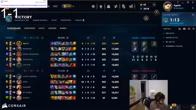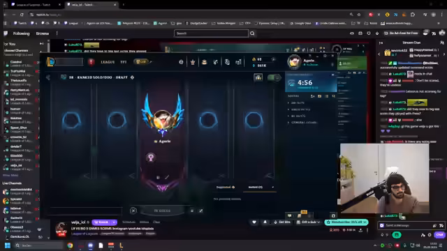 03:47:22Der Streamer vertieft sich in die Champions-Builds für aktuelle Spiele. Für Yasuo entscheidet er sich für Lethality statt Bruiser, um dem gegnerischen Lee Sin besser standhalten zu können. Er analysiert verschiedene Item-Optionen wie Serpent Fang und Mercury, je nachdem, ob das gegnerische Team viel Schaden oder Schilder hat. Sein Kommentar zu gefüllten Spielern unterstreicht sein Misstrauen gegenüber dem System und sein Bemühen, durch strategische Spielweise wie Vision und Kontrolle über Camps, Nachteile auszugleichen.
