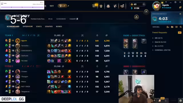 06:02:30Während des Streams treten plötzlich technische Probleme auf. Der Streamer bemerkt, dass das Spiel und die Verbindung nicht mehr funktionieren. Es gibt Lösungsversuche wie das Ein- und Ausloggen, doch das Problem bleibt bestehen. Da das Spielen von League of Legends unmöglich wird, denkt er darüber nach, eine alternative Aktivität wie Aram zu starten, was aber ebenfalls nicht sicher funktioniert.