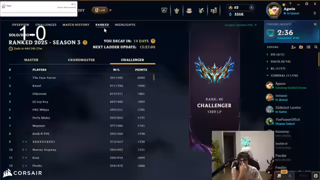 00:39:06Der Streamer ist überrascht über seinen Rangverlust von Rang 4 auf 49 und fragt die Zuschauer nach Erklärungen. Er scherzt über sein Aussehen und die Verbesserung seiner Attraktivität. Es folgt eine Diskussion über die Champion-Auswahl und Runen, insbesondere für Sylas. Er beklagt, dass Sylas nicht oft gespielt wird und dass er sich Gedanken über die Runen macht. Eine persönliche Anmerkung zu seiner Gewichtsabnahme wird gemacht, und er erwähnt, dass er 18 bis 19 Kilogramm abgenommen hat. Die Wahl zwischen D-Shield und D-Blade wird diskutiert, und er entscheidet sich für D-Blade.
