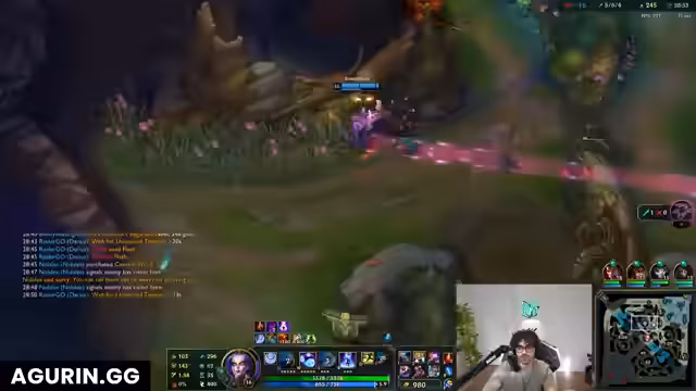 10:32:13Das Gameplay wird hektischer und der Streamer führt mehrere, riskante Aktionen durch. Er wählt den Champion Ryze und plant, den Gegner im Jungle zu jagen, obwohl er im Nachhinein zugeben muss, dass er den Gegner unterschätzt hat. Im Team gibt es Kommunikationsprobleme; sein Support hat ein wichtiges Item nicht dabei und die Teamkompensation wird als 'homeless' beschrieben. Obwohl er später in einem Kampf mehrere Gegner 'one-shotet', verliert das Team aufgrund eines fehlgeschlagenen Engagements an der Nexus-Tower. Der Streamer ist frustriert über die vergebene Chance und sein eigenes fehlgeschlagenes Verhalten in der entscheidenden Situation.