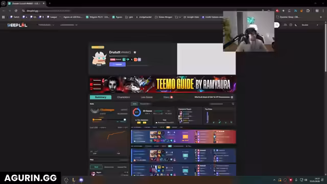 05:32:08Agurin bewertet seine eigene Leistung und die seines Teams in der aktuellen Ranglisten-Saison. Er betrachtet seinen Erfolg und erinnert sich daran, im vergangenen Jahr 1.6k LP erreicht zu haben. Eine niedrige Winrate mit dem Champion KSante wird thematisiert und seine Auswirkungen auf den Karrierefortschritt werden als Bedrohung angesehen. Er betont die Notwendigkeit von harten Spielen auf hohem LP-Niveau und die teils unerwarteten Niederlagen.