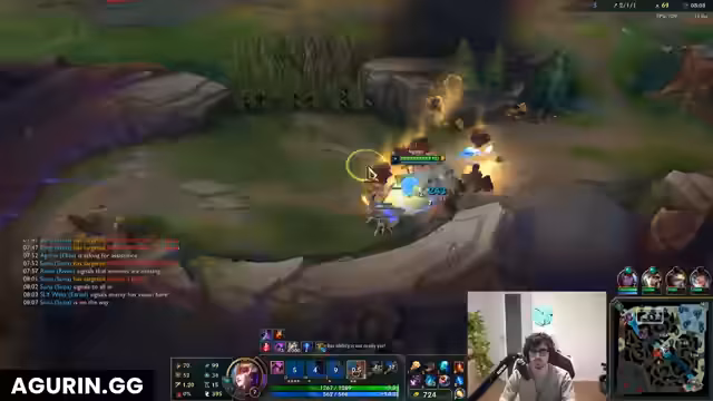 06:24:48Der Streamer beobachtet, wie Zona langsam einen Gegner in der Mid-Lane tötet. Anath wird als potenzielles Ziel im Jungle identifiziert, und der Streamer plant einen 'Chunk', eine Art harten Gank. Er besitzt eine 'Stun'-Fähigkeit. Sona wird in einen 'Zolo-Kill' verwickelt. Der Streamer fragt, warum der gegnerische Azir nicht wütend ist und diskutiert die taktische Möglichkeit, einen Talon zu jagen.