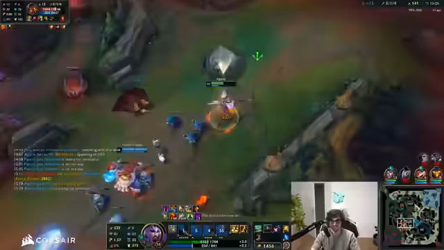 00:10:50Während des Spiels macht der Streamer mehrere Fehler, darunter das Vergessen eines Jungle-Items und eine misslungene Divesituation. Es kommt zu technischen Problemen, die er kommentiert, wie das Anpassen seines T-Shirts und das Fehlen von Sounds. Seine Teamkameradin Poppy wird als unbrauchlich kritisiert, da sie laut Streamer kaum Dashes hat und wichtige Fights nicht tankt. Das Spielverhalten des Teams, insbesondere des Supports, wird als konfus und nicht koordiniert beschrieben.