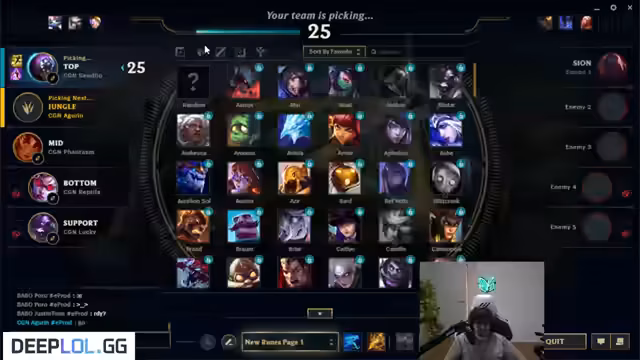 09:05:07Der Streamer fragt, warum CJ eSports in der PrimeLeague Tier 2 ist, obwohl sie die Liga gewonnen haben. Er gibt an, dass einige Admins sie nicht mochten und sie wegen zweier FF-Spiele aus Division 1 geworfen haben. Er fragt rhetorisch, ob er Forsten in Discord sagen würde, was zu tun, oder das in einem Live-Spiel tun würde. Das Team hat nun eine Draft mit einem Bard gegen Rek'Sai und Lee Sin.