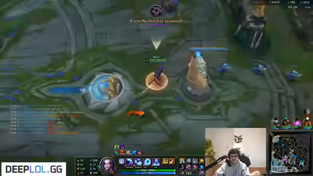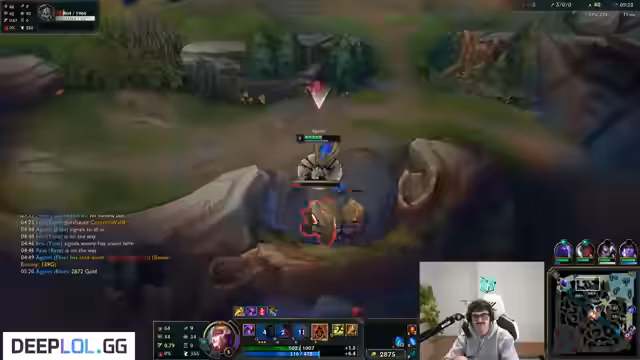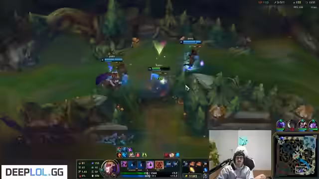05:32:24Es finden sich mehrfach taktische Fehler in der Ausführung der Spielzüge. Der Streamer merkt an, dass ein Gegner 'No Flash, no Ult' hatte, was die Situationen für ihn vereinfacht hätte. Er verfolgt Kha'Zix auf dem Raptor-Camp und wird durch die map weite Präsenz von Lux und Kha'Zix verunsichert. Er stellt fest, dass Lux auf Tempo ist und den Voidgropso jagt, was seinen Spielstil der Aura-Farming-Truppe kontrastiert.