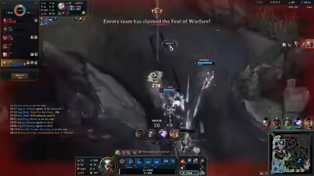 08:33:11Nach einem Skirmish an der Bot-Lane, in dem der gegnerische Top-Laner getötet wurde, zielt das Team darauf ab, von diesem Vorteil zu profitieren. Der Gegner ist auf der Top-Seite beschäftigt, was dem Team erlaubt, den Draken zu nehmen. Es wird eine klare Kommunikation betont, um übermäßiges Gruppieren zu vermeiden und stattdessen auf Ziele wie den Draken zu fokussieren. Der Streamer positioniert sich proaktiv, um Top zu pushen und den gegnerischen Jungler zu binden, was dem Team langfristige Vorteile verschaffen soll.