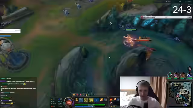 00:03:39Während des Spiels fokussiert sich der Streamer intensiv auf die Spielmechaniken. Es werden Fehlersituationen analysiert, wie etwa fehlbare Fähigkeiten oder ineffektive Combos. Dabei kritisiert er die Itemwahl eines Gegners, der gegen bestimmte Schadensarten das falsche Equipment kauft, und bemängelt die geringe Reichweite seiner Champion-Fähigkeiten, die es ihm unmöglich macht, bestimmte Ziele zu erreichen oder zu bekämpfen.