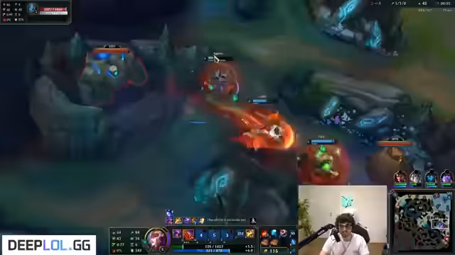 00:59:31Der Streamer analysiert sein eigenes Spielverhalten und erkennt strategische Fehler, die zum Nachteil des Teams wirkten. Er gibt an, nicht properly farmen zu können, da der gegnerische Jungle permanent in seiner Camps lauert. Seine Bot-Lane wird als inaktiv und unkooperativ beschrieben. Die Situation eskaliert, als der gegnerische Hecarim erfolgreich gankt, was den Jungle des Streamers komplett lahmlegt und ihn in eine defensive, passive Rolle zwingt.