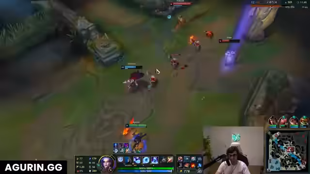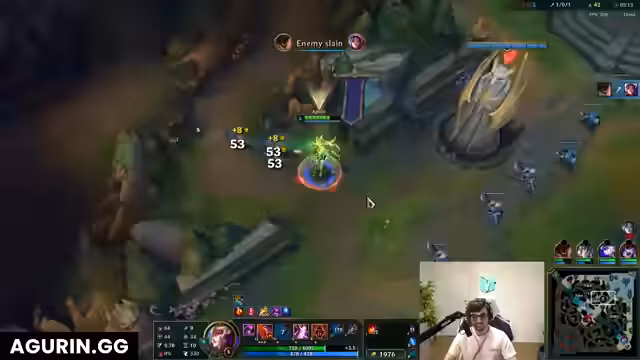 00:01:51Der Stream startet und der Streamer beklagt sich über seine niedrige LP, da er in einem Spiel mit zufälligen Master-Spielern ist. Er analysiert die gegnerischen Picks und stellt fest, dass Shen und Kha'Zix derzeit überpowered sind. Seine eigenen Entscheidungen werden kritisch hinterfragt, insbesondere sein aggressiver Start auf der Top-Lane, der als zu früh und riskant bewertet wird. Das Gefühl der Frustration über das unfaire Matchmaking ist bereits spürbar.